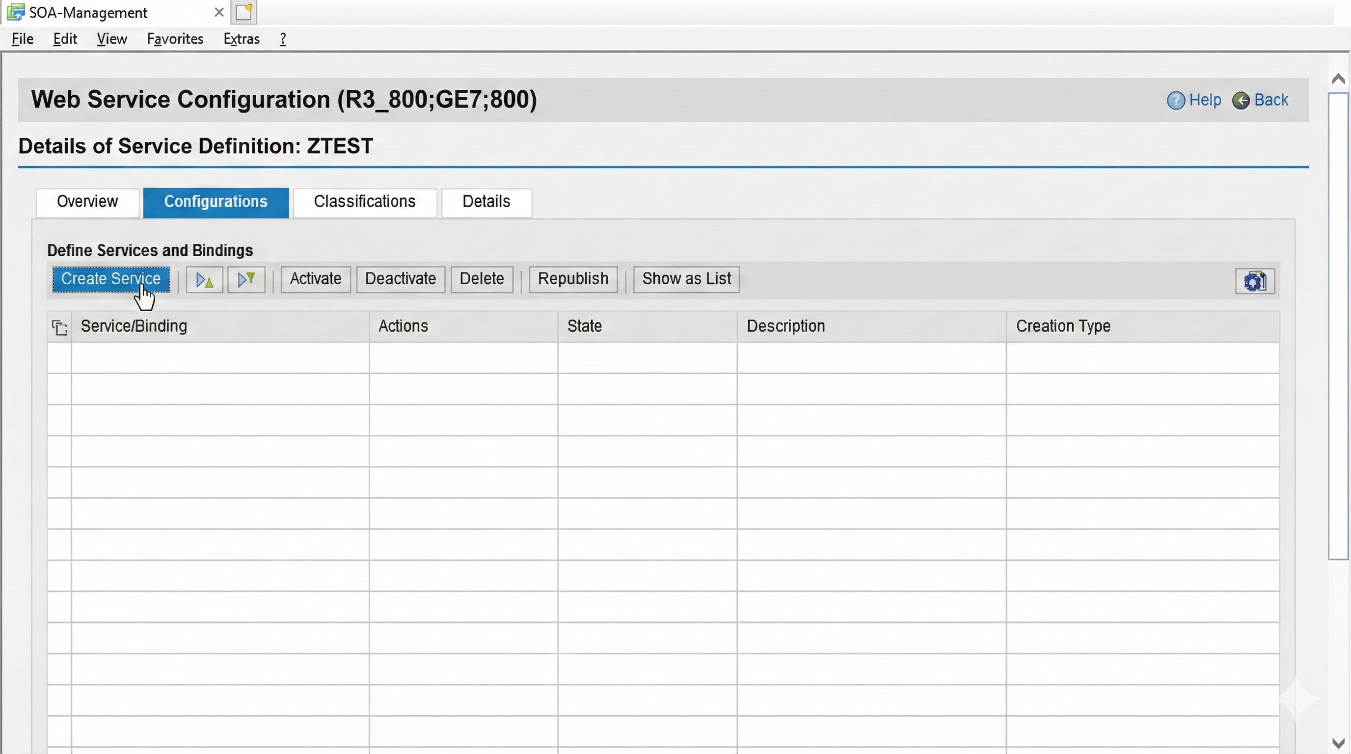 Selecting the service opens the wizard for configuring the web service release via the "Create Service" button.