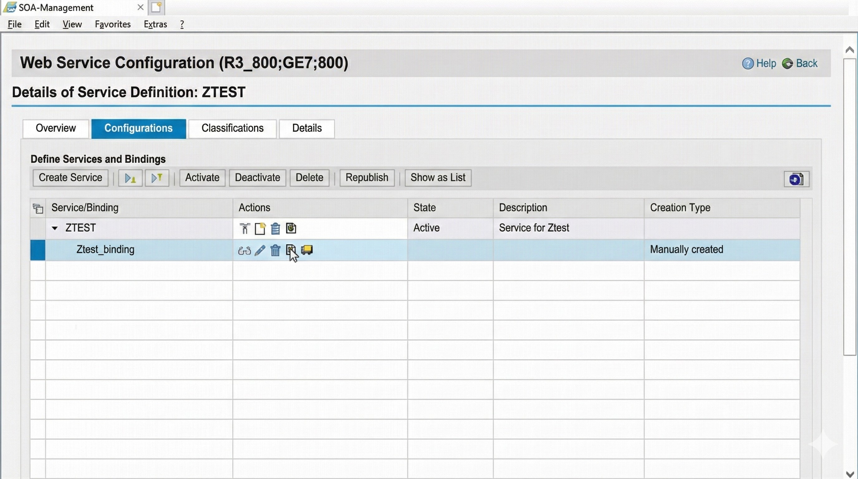 So that applications can access the web service, they now only need the URL of the WSDL of the web service. This information can be displayed via the corresponding symbol in the binding entry in the list.