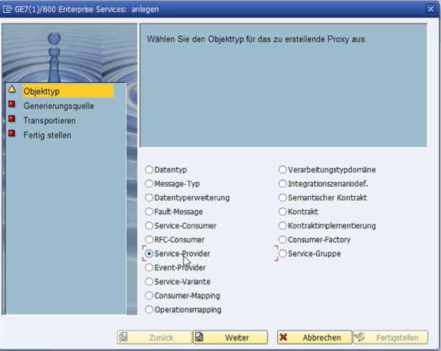 Fig. 1: Select Service Provider as object type
